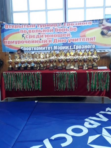 c 2-3 октября 2018 году г. Грозном прошел открытый турнир по вольной борьбе посвещенному ко дню учителю в турнире приняли участие более 260 юных спортсменов из различных республик и городов северного Кавказа.